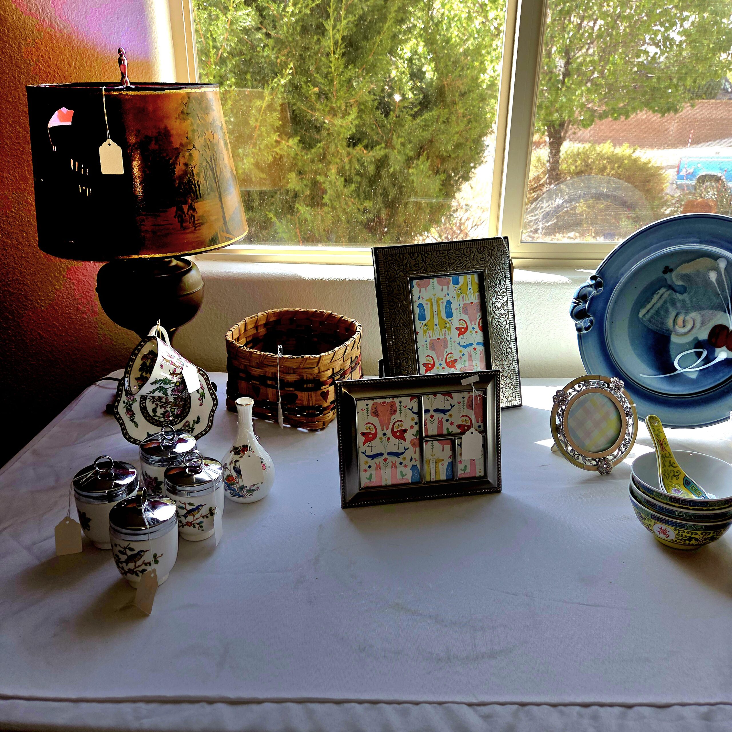 Feeling fancy? If Moscow Mules are your go-to, we’ve got two gorgeous copper mugs that are ready to make your next cocktail hour feel like a five-star event. There’s also a splash of Fiesta ware that looks like someone joyfully spilled a bag of Skittles across your future kitchen, plus tabletop appliances, crystal, and Mexican Talavera that will have your cabinets looking like they finally got their life together. Lamps, patio furniture, collectibles, colored glass, stained glass, stoneware, stemware, and china—basically everything you need to host a dinner party where people casually ask, “Okay but seriously…where did you get all this?” and you get to smile and say, “Oh, just Estate Sale by Wings.”