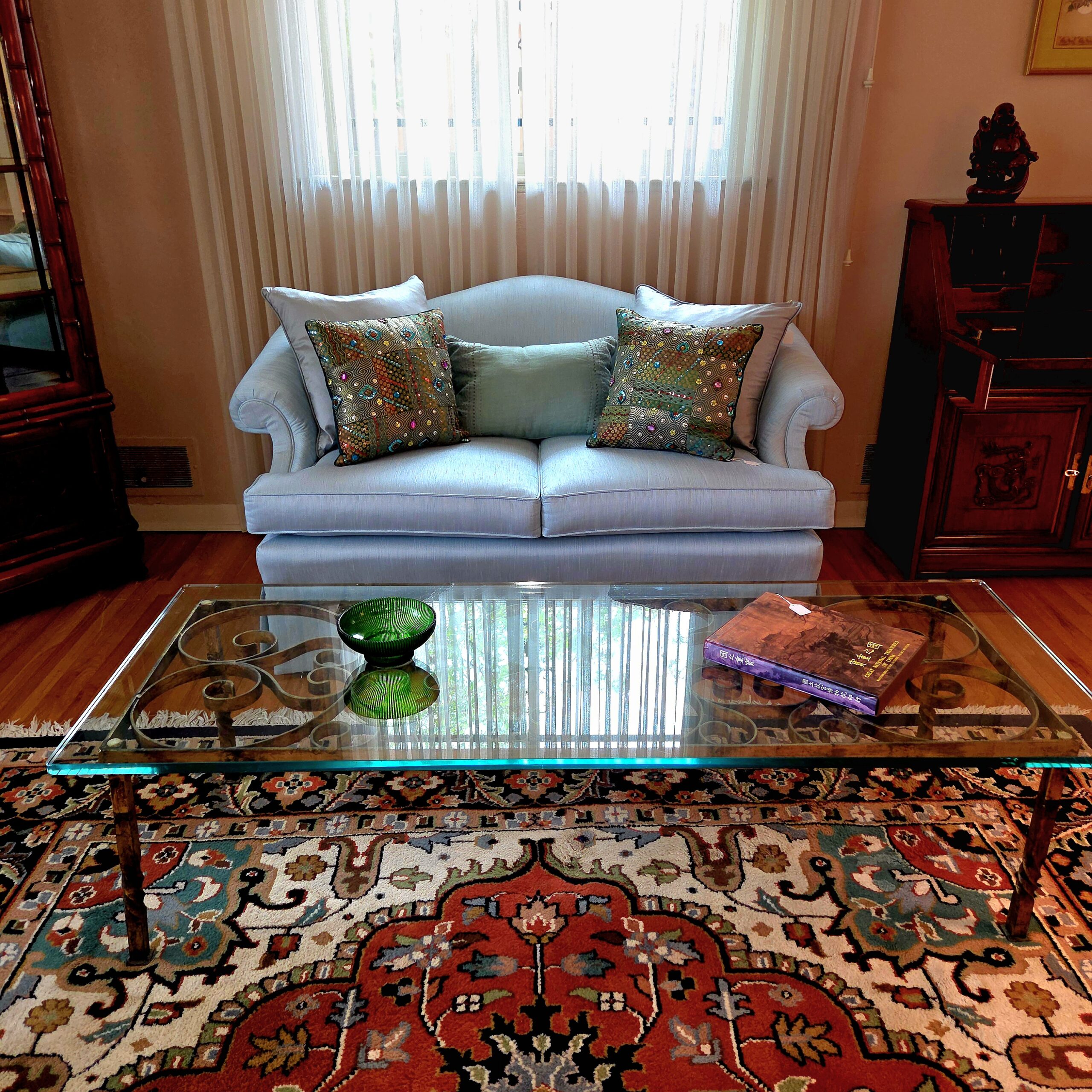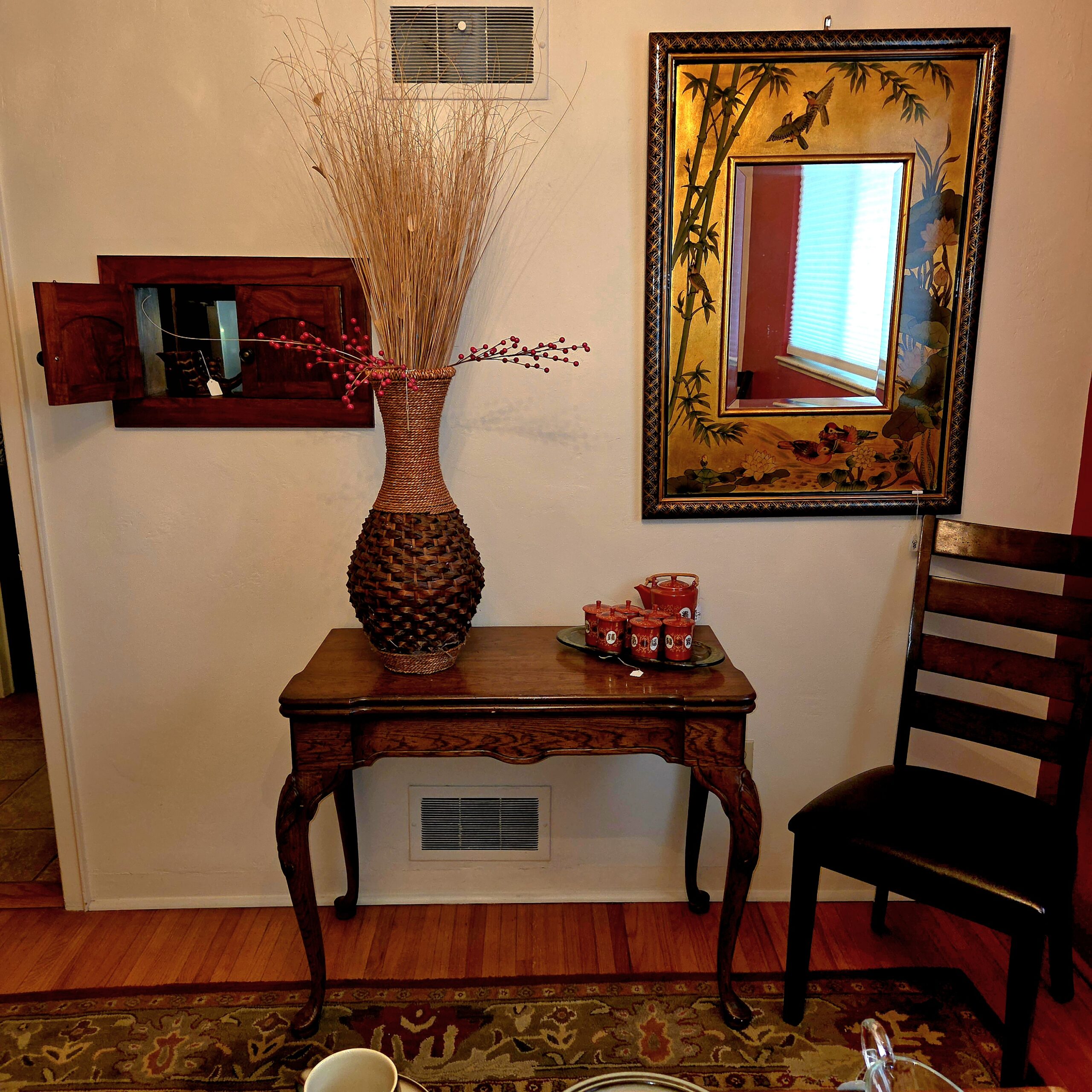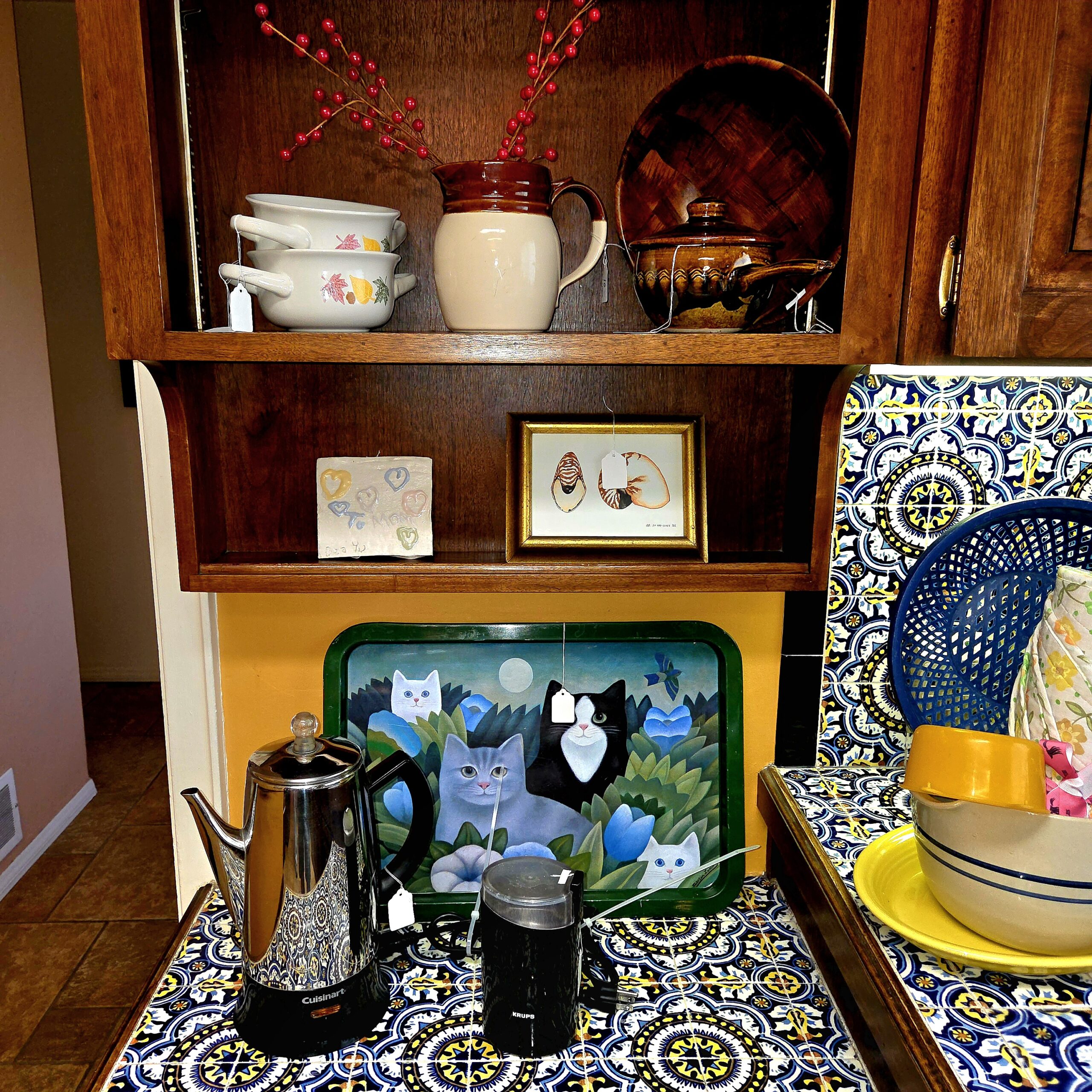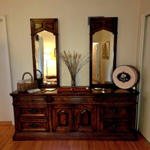 This rambler-style home is absolutely packed with treasures that clearly did not get the memo about “less is more.” The artwork is bold and colorful, the collectibles look like they should come with a velvet rope and a museum plaque, and the furniture is so good it may cause you to reevaluate everything currently in your living room. We’ve got beautiful rugs, elegant vases, sparkling stemware, dishes for every possible occasion (including ones you’ll invent later), and not just one but several Stiffle lamps in near-perfect condition—because apparently this house believed in excellent lighting at all times.