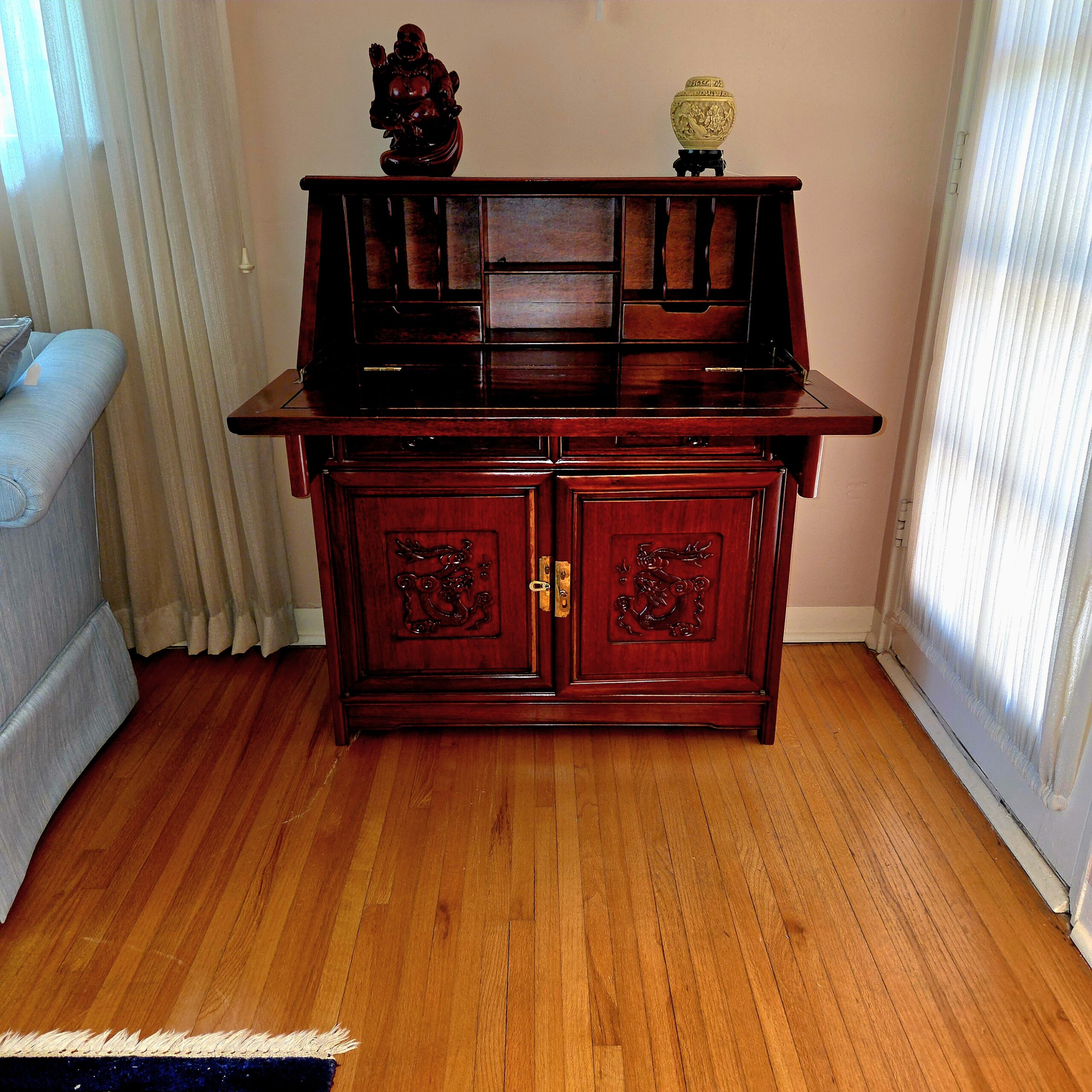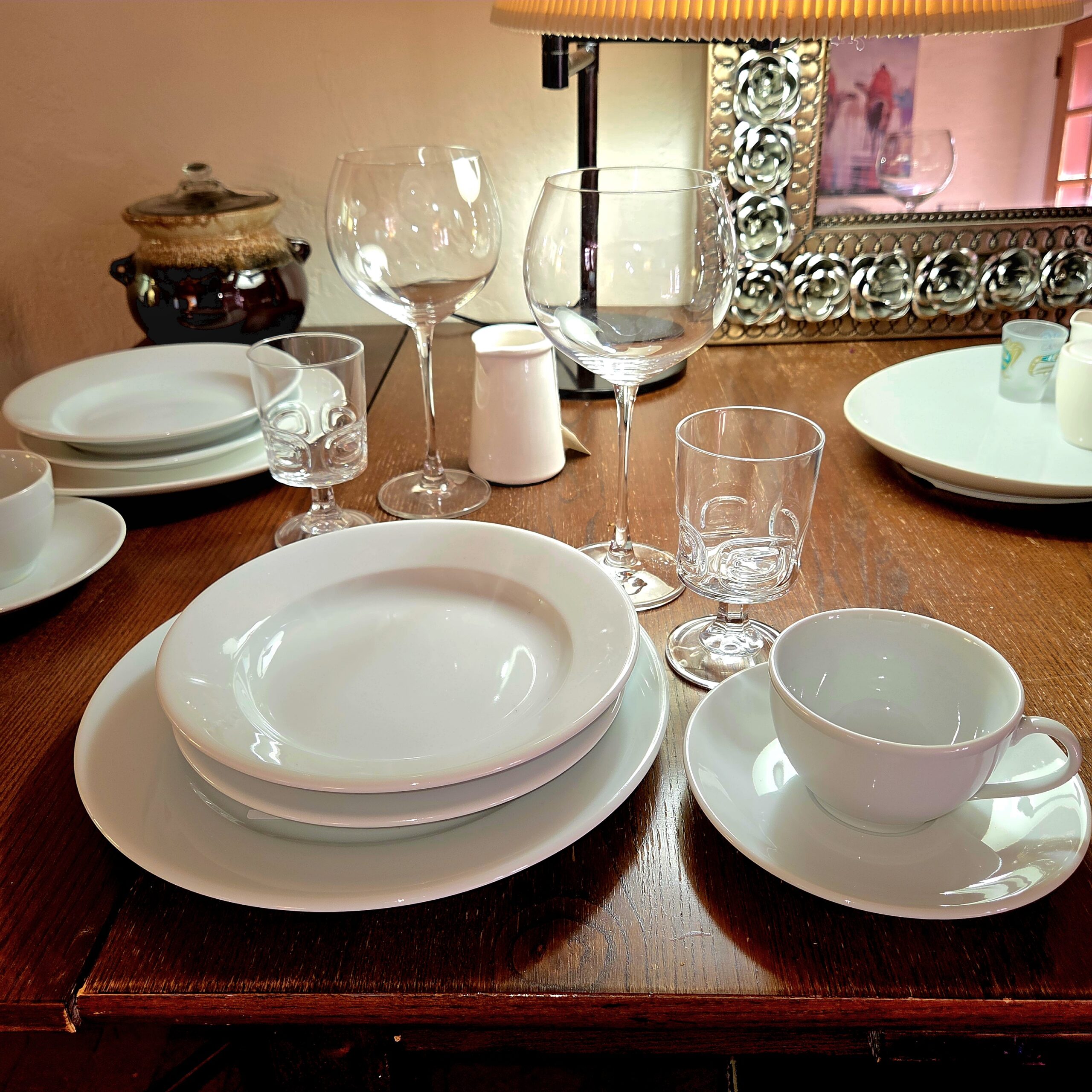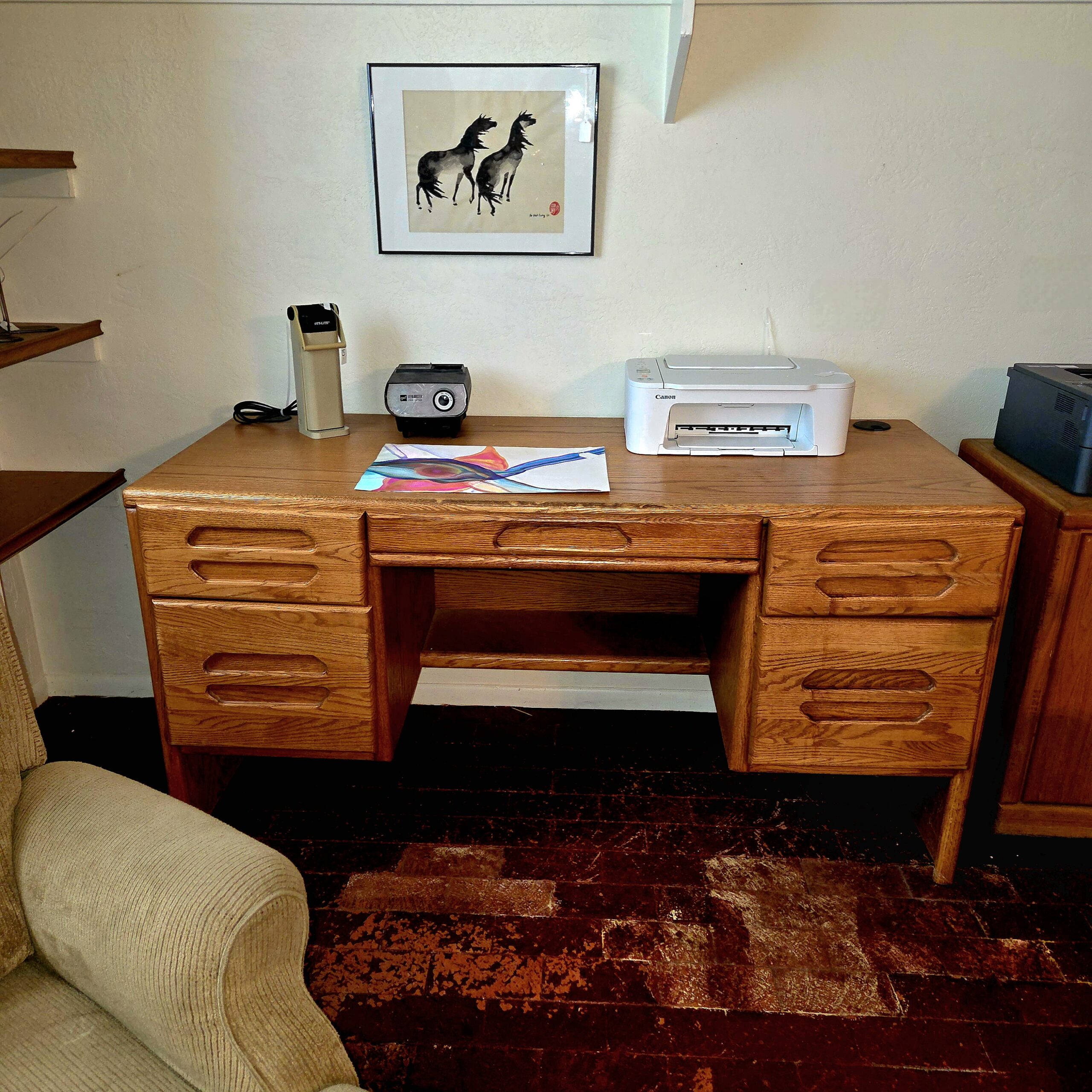 This rambler-style home is absolutely packed with treasures that clearly did not get the memo about “less is more.” The artwork is bold and colorful, the collectibles look like they should come with a velvet rope and a museum plaque, and the furniture is so good it may cause you to reevaluate everything currently in your living room. We’ve got beautiful rugs, elegant vases, sparkling stemware, dishes for every possible occasion (including ones you’ll invent later), and not just one but several Stiffle lamps in near-perfect condition—because apparently this house believed in excellent lighting at all times.