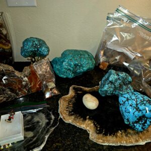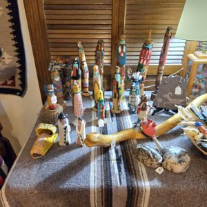 We’ve got animal mounts keeping an eye on things, and Native American artwork that isn’t just a collection—it’s practically a museum. Wall art, kachinas, pottery, rugs… not a handful, not a dozen, but a few HUNDRED. Colored glass, clear glass, porcelain teacups and full tea sets for when you suddenly decide to become classy, lamps for every mood, boxing gloves and equipment in case shopping turns competitive, tools, a generator, and enough rocks to start your very own quarry (seriously… you could branch out into the gravel business by Monday).